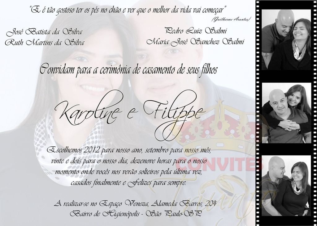 * Convite produzido em papel fotográfico com gramatura de 220 grs.
