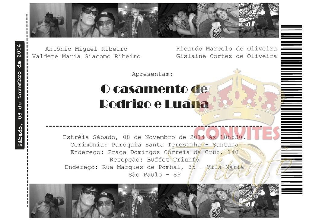 * Convite produzido em papel fotográfico com gramatura de 220 grs.