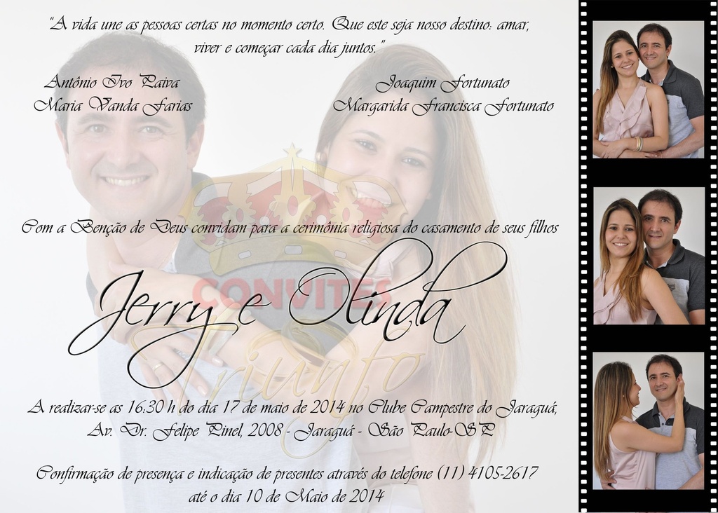* Convite produzido em papel fotográfico com gramatura de 220 grs.