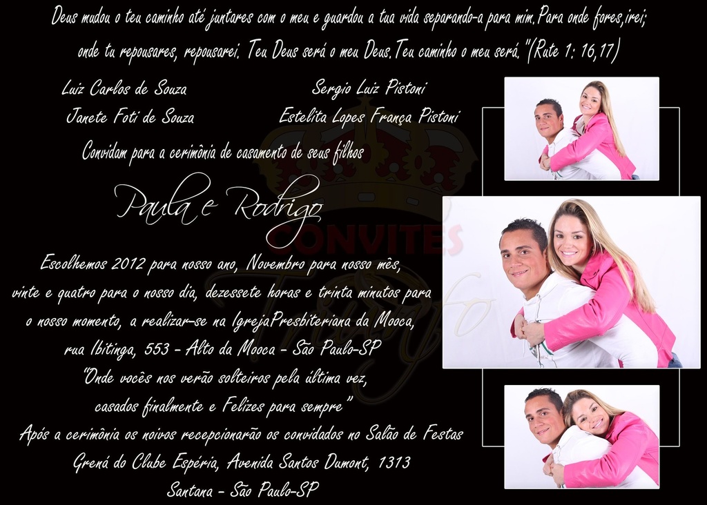 * Convite produzido em papel fotográfico com gramatura de 220 grs.